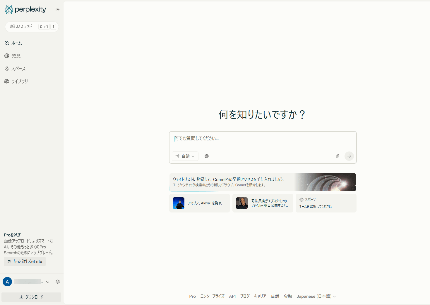 これで準備完了です。さっそくPerplexity AIを使ってみましょう!