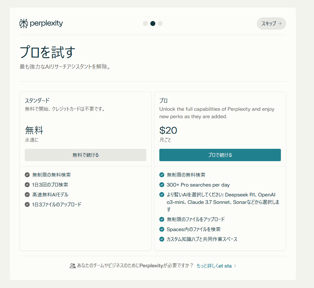 - 現在、有料アカウント(Perplexity Pro)にはプロモーションが適用されています。