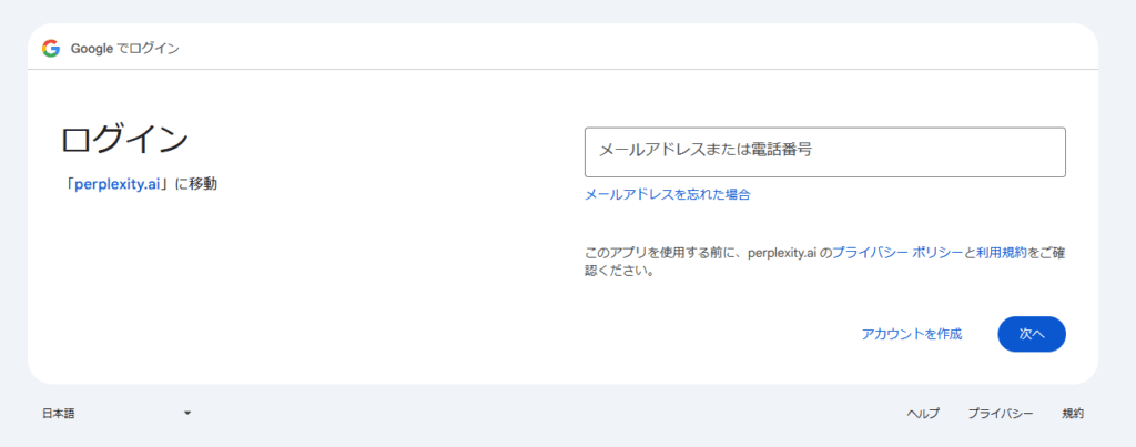 まずは、無料のアカウントで試してみましょう。Perplexity AIの基本機能を体験できます。